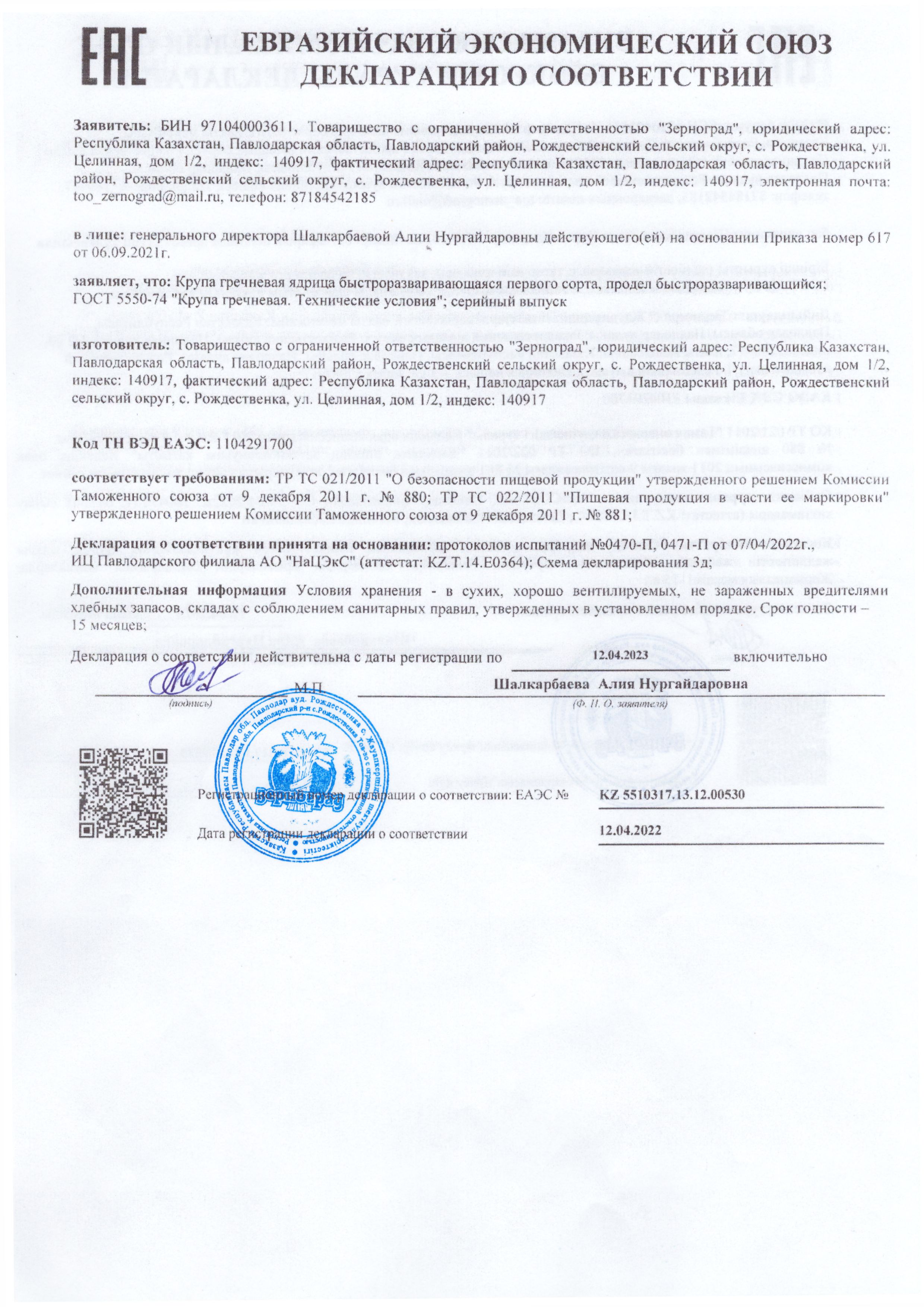 ТОО «Зерноград» - современное динамично развивающееся производственное предприятие, которое является одним из лидеров в Казахстане по объему производства и продаже гречневой крупы.